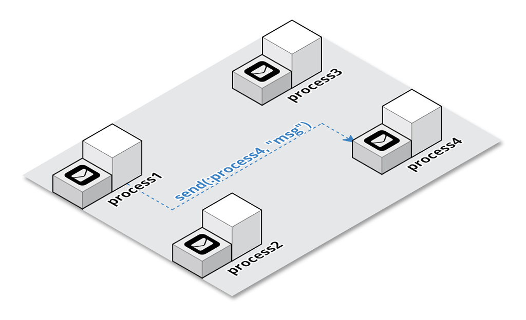 In Erlang processes communicate among themselves by message passing. Every process has one mailbox. A process can read messages that appear in its mailbox and can also send messages to mailboxes that belong to other processes. This way, processes can communicate with each other without having to share any data. This frees developers from writing locks around data access when writing code that may run concurrently.