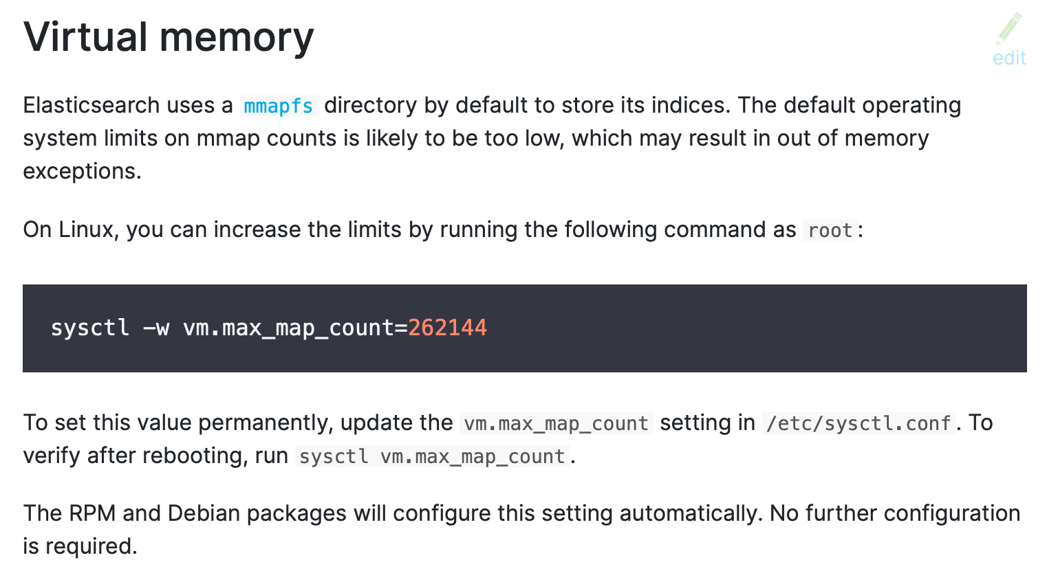 인증 관련 작업이 마무리 되면 Elasticsearch가 운용되는 서버의 VM 설정을 해야 합니다.