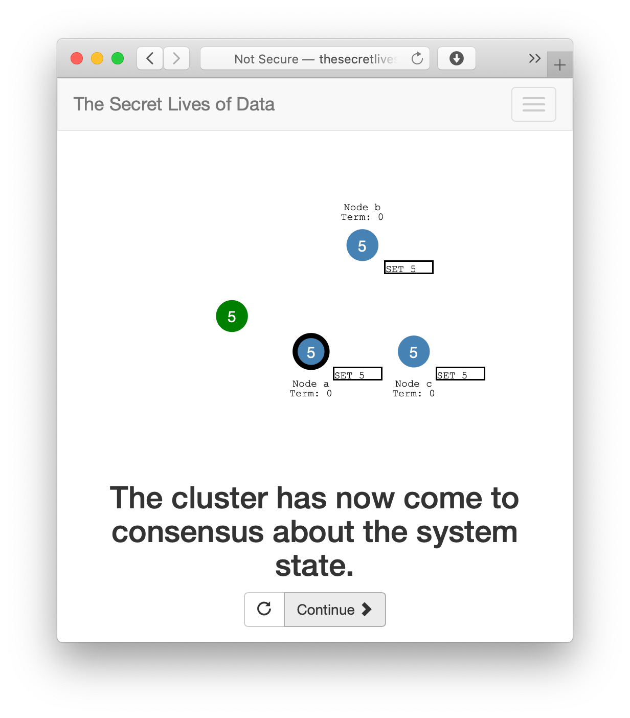 합의는 내결함성 분산 시스템에서 근본적인 문제입니다. 합의는 "값"을 공유하는 여러 서버를 포함합니다. 일단 값에 대한 결정에 도달하면, 그 결정이 최종입니다. 일반적인 합의 알고리즘은 대부분의 서버를 사용할 수있을 때 진행됩니다. 예를 들어, 2 대의 서버에 장애가 발생하더라도 5 대의 서버 클러스터가 계속 작동 할 수 있습니다. 더 많은 서버가 실패하면 진행이 중지되지만 잘못된 결과는 반환되지 않습니다.